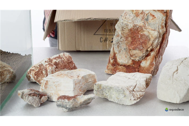 Tolles, interessant geformtes Dekorationsgestein in hellen Braun- Beige- und Rosttönen für Süsswasser-Aquarien und Terrarien. Die Form der Steine erinnert an Canyons oder den Ayers Rock. Das praktische Set enthält genügend Steine um ein 100 cm Becken perfekt zu dekorieren, die Anzahl der Steine kann dabei je nach Größe der Einzelstücke variieren.